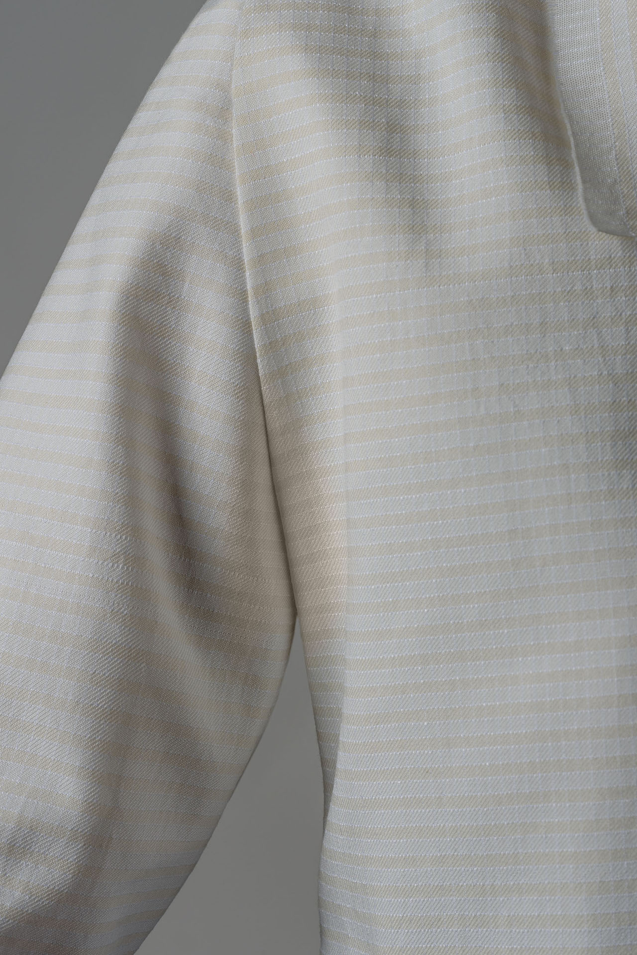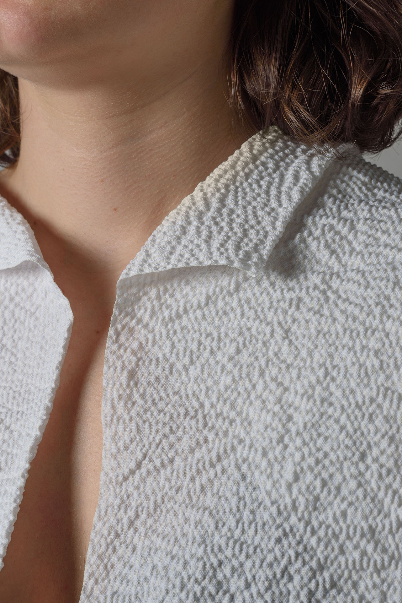 Ce projet interroge la manière de concevoir des textiles mêlant fibres naturelles et synthétiques de manière à anticiper, révéler ou accompagner les altérations induites par le temps, tout en prolongeant leur durabilité. « 67 / 33 » propose des solutions pour deux cas pratiques : le jaunissement des textiles dû à la transpiration et le grisaillement des textiles clairs en machine. Un nouvel ennoblissement apparaît sur les tissus, dont les défauts d’usure sont détournés par des jeux de couleurs et d’armures.