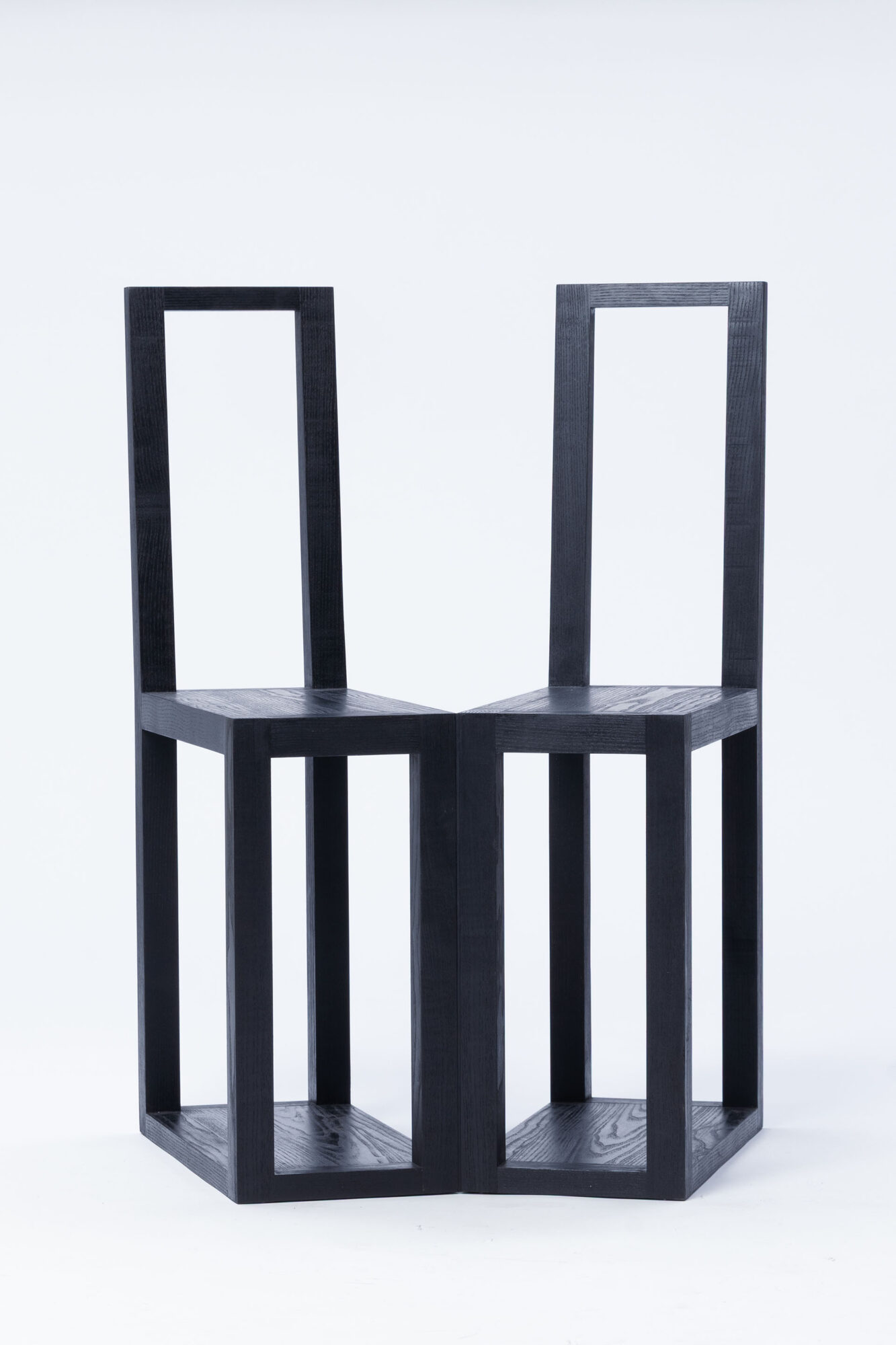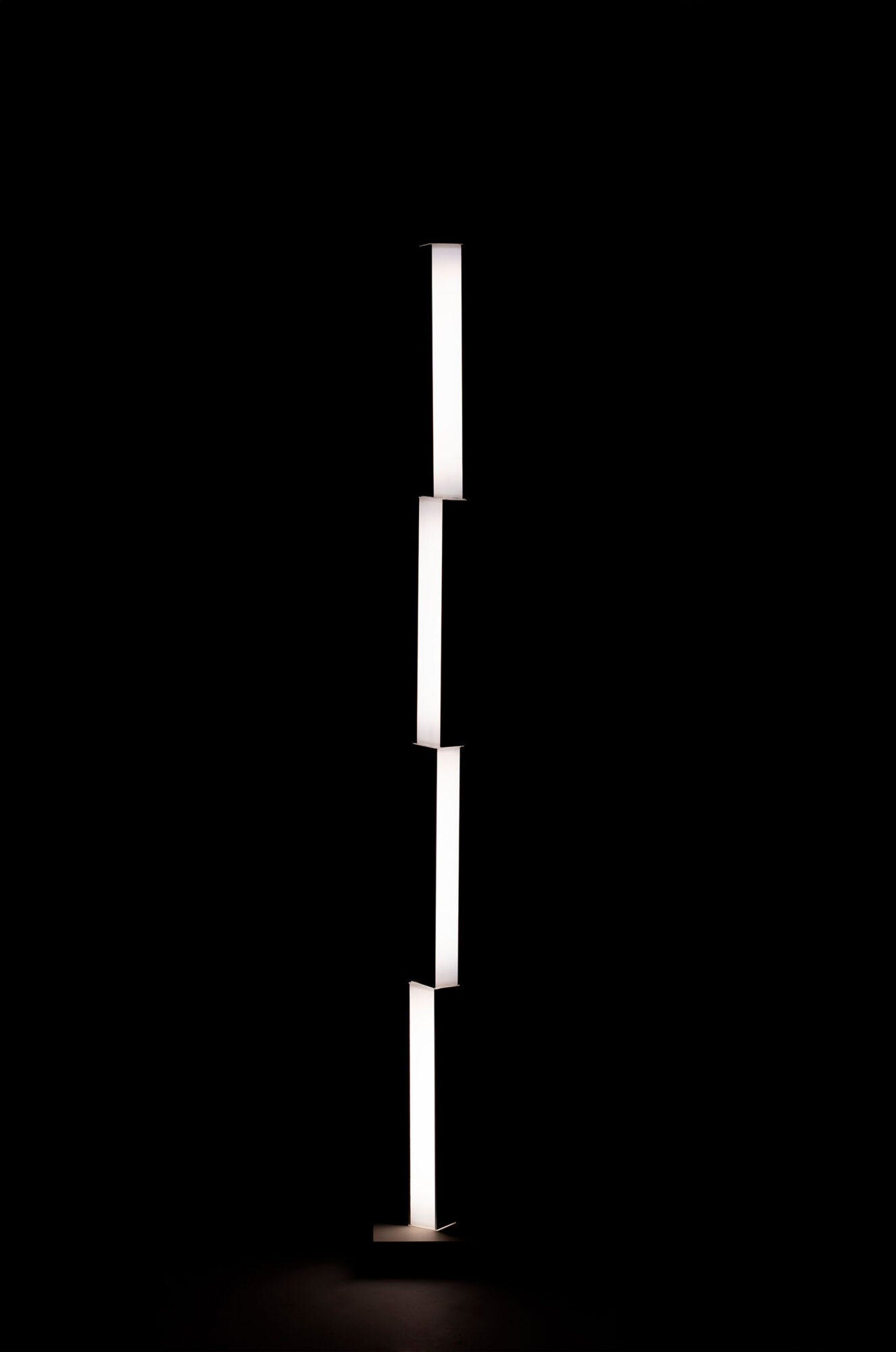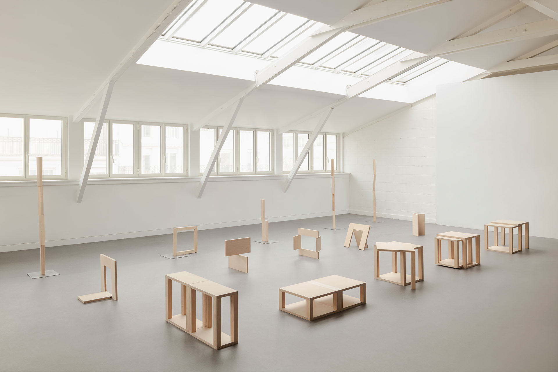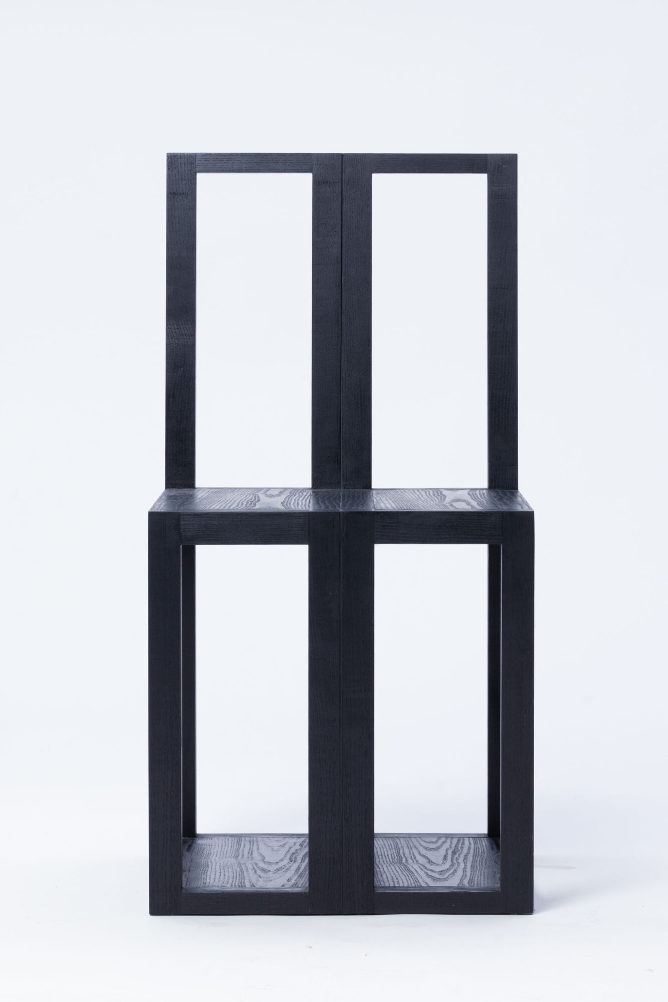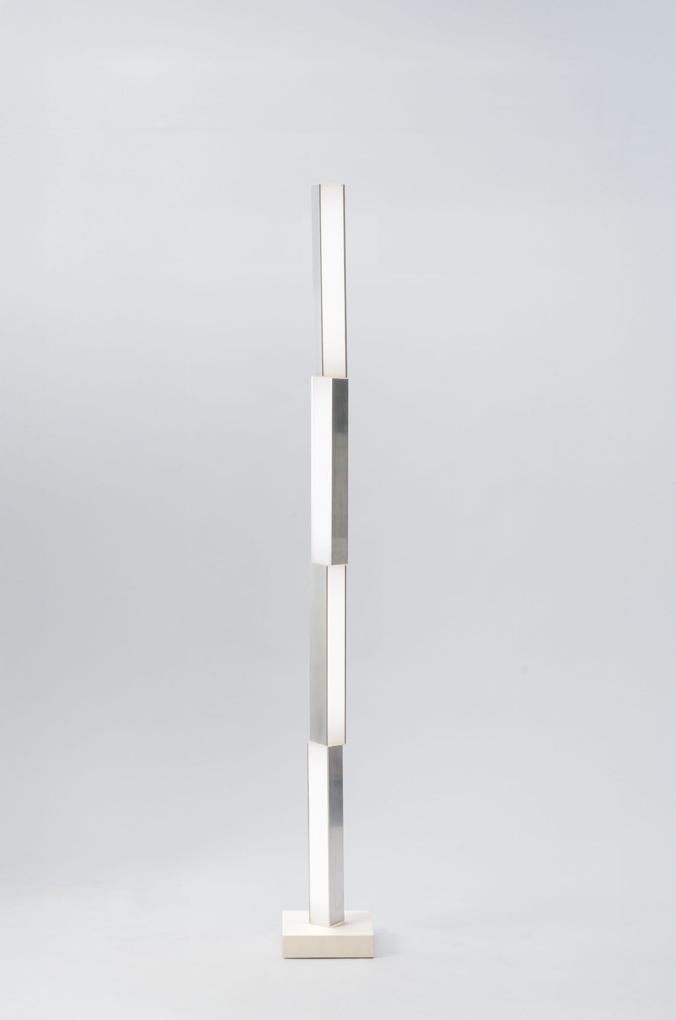 Une chaise, une lampe et un miroir sont ainsi conçus pour évoluer en fonction de l’usage, modifiant à la fois leur fonction et leur perception, tant à l’échelle du corps qu’à celle de l’espace. La forme n’est plus figée ; elle apparaît comme un état temporaire, choisi parmi une multitude de positions. Le mobilier retrouve son sens originel : celui d’un corps vivant, mobile et capable de métamorphose.