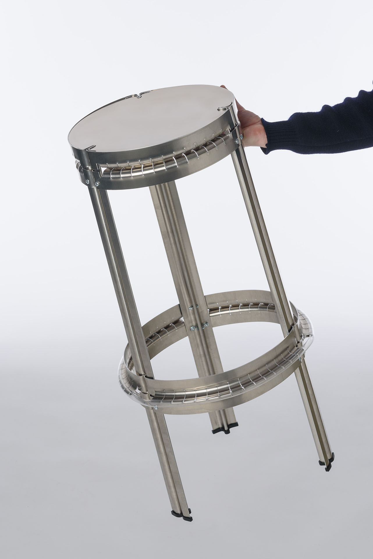 Plier, patronner, pincer, fléchir, maintenir. De ce protocole expérimental émergent une lampe, un miroir et un tabouret, dans une logique où le dessin se construit par friction entre la plasticité d’une recherche et ses contraintes de production.