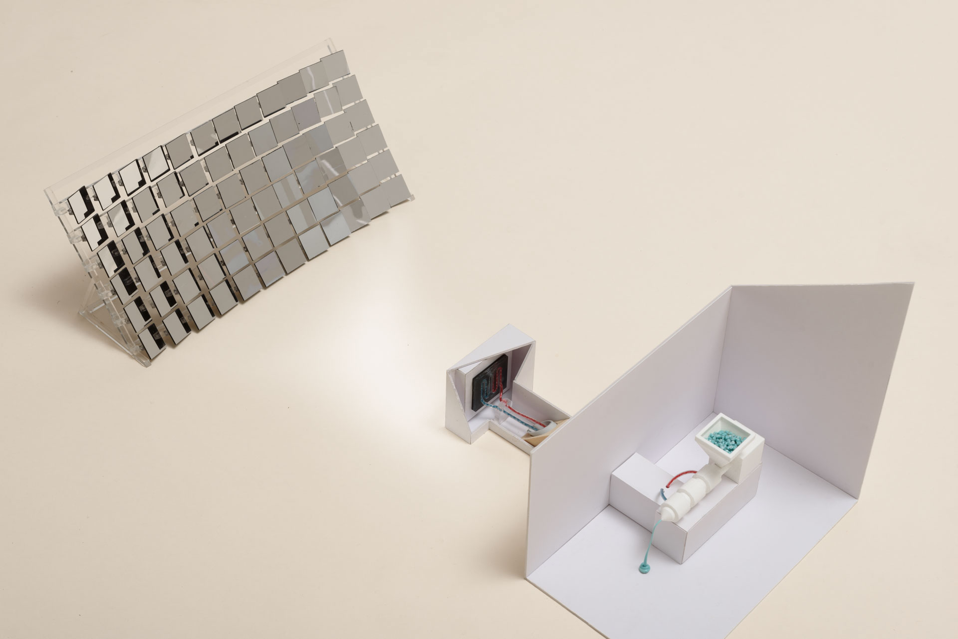 La concentration des rayons solaires à l’aide de miroirs permet de chauffer à hautes températures, comment exploiter le potentiel énergétique de ce procédé peu utilisé ? Par différents scénarios, Solstice questionne l’industrie du plastique et cherche à comprendre comment un mode de production intermittent et saisonnier peut modifier notre rapport ambivalent à ce matériau.