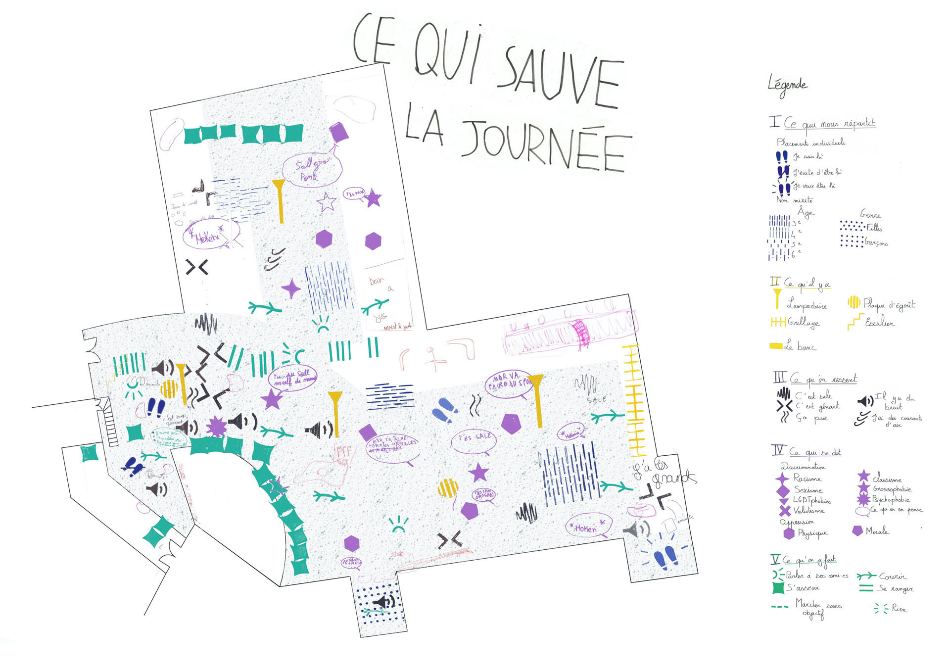 Quelles sont les règles et les codes dans la cour de récré, comment les faire évoluer pour se réapproprier cet espace commun ? C’est à travers 12 ateliers que les élèves d’un collège d’Évry-Courcouronnes ont questionné les rapports sociaux inégaux provoqués dans/par leur cour, puis ont conçu et fabriqué un espace plus inclusif. De ces ateliers sont nés un cahier de recommandation qui synthétise la démarche participative et une maquette qui permet d’encadrer et de communiquer des diagnostics d’usage.