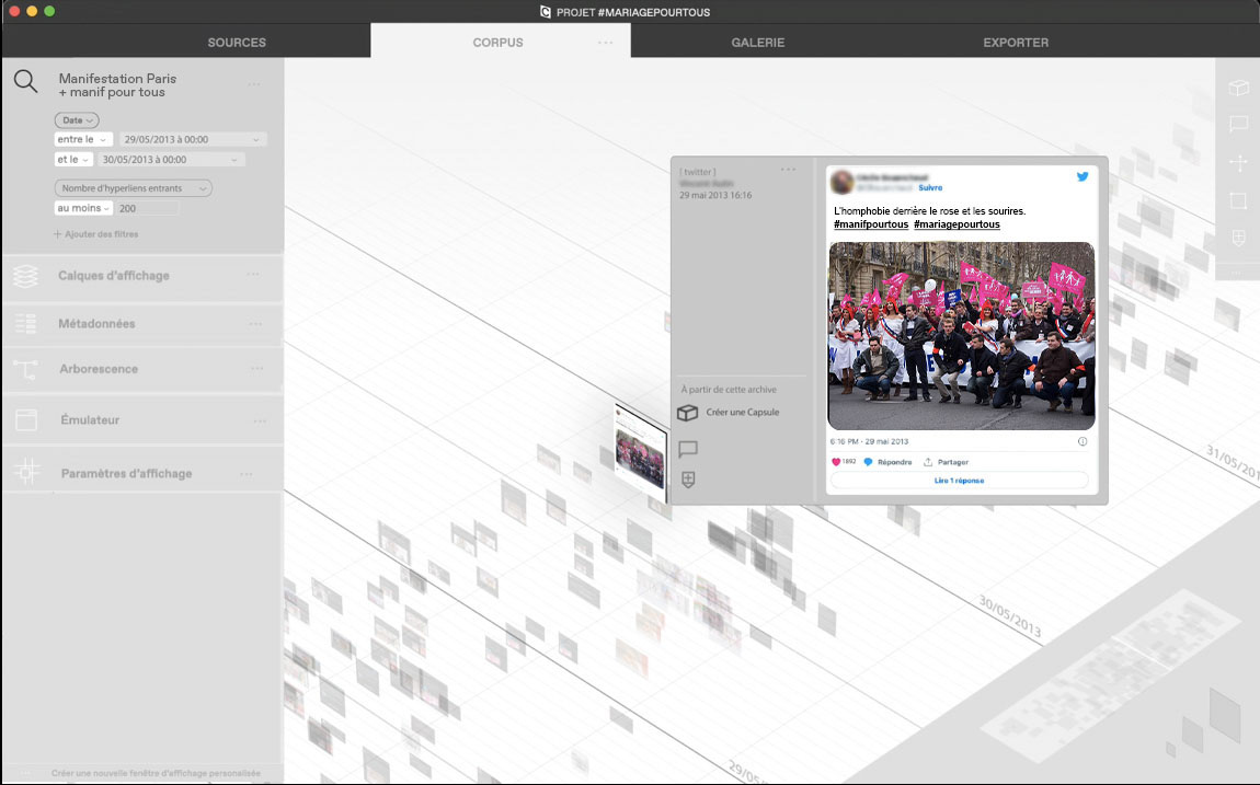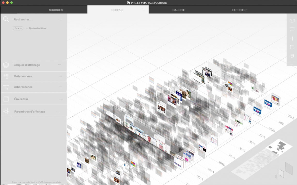 À la Bibliothèque Nationale de France, en plus des milliers d’ouvrages papiers, sommeille un patrimoine culturel peut-être plus grand encore : les archives du Web français, des millions de sites collectés chaque année pour en garder une trace au fil du temps. Afin de rendre ces ressources incroyables présentables au grand public, le projet propose un dispositif de curation de ces archives pour permettre de les incorporer à des expositions, des articles, des conférences…